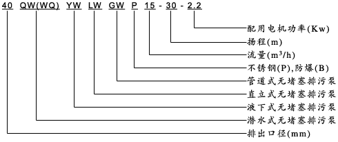 無堵塞排污泵型號意義: