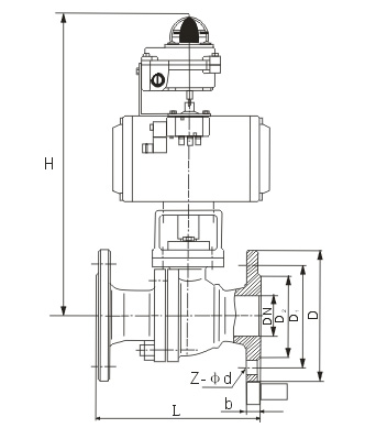 氣動(dòng)O型切斷球結(jié)構(gòu)尺寸圖: